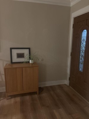 I am absolutely thrilled with this cabinet! The warm pine finish and sleek, mid-century modern design fit perfectly with my space, adding a touch of elegance and style. The fluted wood detailing gives it a unique, textured look that really elevates the piece. Assembly was straightforward, and once set up, the cabinet is sturdy and functional. Despite some initial concerns about the door adjustments, I found that once everything was in place, the doors aligned well and now operate smoothly. It’s spacious enough to store everything I need, and the overall quality is top-