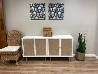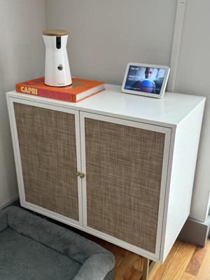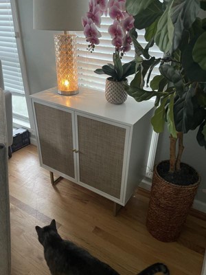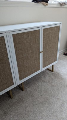 Nathan James Kova Storage Cabinet Textured Rattan White Wood: Oak Surface, Metal Frame, Fixed Shelf, 32" Height