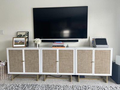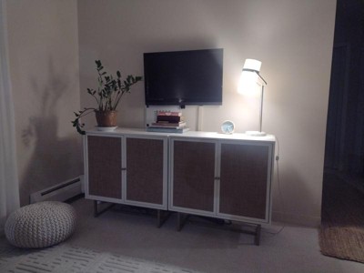 Guests appreciate the stylish design and quality of the console and cabinets, highlighting their ease of assembly and functionality. Many find the materials to be sturdy and visually appealing, making them a great addition to various living spaces. While some guests noted minor issues with assembly instructions and alignment, the overall sentiment is overwhelmingly positive, with many recommending the product for its aesthetic and practical benefits.