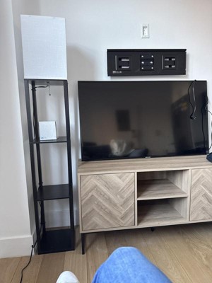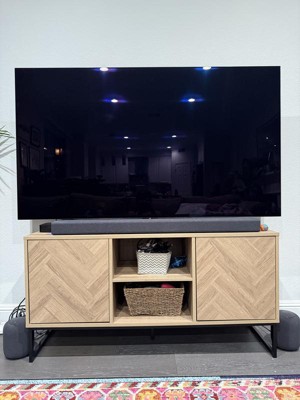 Nathan James Dylan Herringbone Media Cabinet Light Golden Oak Matte Black: Entertainment Center with Cable Management, Fits 55" TV