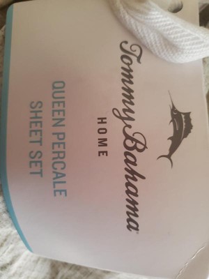 [This review was collected as part of a promotion.] This review is for the Tommy Bahama Queen Percale sheet set which I received as a sample in return of my honest review. This bed sheet has a very nice material that doesn't irritate or bother me. It's texture is very plain so you will not even notice it. The color is neutral and it came with 2 pillow cases, one fitted and one flat bedsheet. Overall, I would say that this is a good bed sheet and fits most needs. It also feels premium and is easy to handle. One star less as the fitted sheet didn't fit the queen mattress.