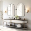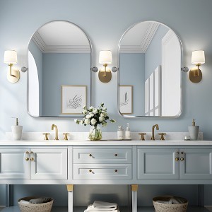 Introducing our sleek Metal Frame Arch Bathroom Wall Mirror Set of Two, crafted to elevate your bathroom decor with sophistication and functionality. Its pivot design allows the position to be adjusted to meet your needs at different angles when using your bathroom mirror.Designed with a durable metal frame that resists rust, these mirrors offer both style and resilience.Its modern and simple design, coupled with the arched top design, combines retro and fashion.Engineered with shatterproof mirror surfaces, our bathroom wall mirrors provide an extra protection for your family. Crafted from premium materials, they boast exceptional clarity, shatter resistance, and enhanced safety features, adding a touch of elegance to your space.