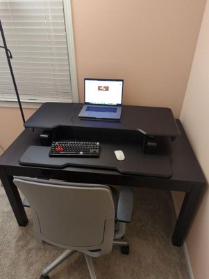 [This review was collected as part of a promotion.] This is a fantastic option for a standing desk without breaking the bank. It was extremely easy to put together, it only took 5 minutes as there were only a few parts. It has 2 hand switches that allow it to move up and down with enough assist to lift my laptop, keyboard, mouse, and I had a secondary monitor on it too. Stability-wise, it's about as stable as the desk I have it in so no complaints there! This is such a fantastic item for working, especially if you're work-from-home as it's not good to sit all day. Fantastic item.