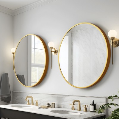 Dovelina Round Metal Framed Wall Mirror Bathroom Vanity Mirror - 28"Dia, Gold