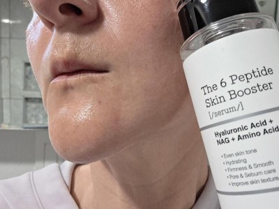 [This review was collected as part of a promotion.] This 6 Peptide Skin booster has worked its way into my daily skincare routine! This serum has a lightweight, watery texture that absorbs effortlessly into the skin and feels like you’re wearing nothing. The light rose scent is very pleasant and layers nicely with my other skincare products. After continued use I’ve noticed less breakouts, softer skin, and an overall improvement.