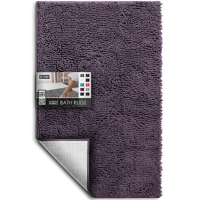 Hearth & Harbor Striped Bathroom Rug, Ultra Soft Large Chenille Bath Mat - Purple