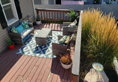 This outdoor rug has received high praise for its vibrant colors, soft texture, and ability to transform outdoor spaces. Guests appreciate its durability and ease of cleaning, making it ideal for high-traffic areas. Many have noted that it dries quickly and lays flat after unrolling. The rug's design complements various outdoor furniture styles, enhancing the overall aesthetic of patios and decks. Overall, it is a stylish and functional addition to any outdoor setting.