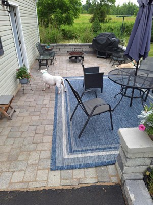 We recently got a new patio and needed a large blue “rug.” We got this one and love it! It feels good to bare feet and looks beautiful.