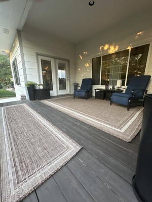 I bought this rug couple of weeks ago and I really love it! I just added a 10x14 composite covered deck addition to my home and this is the perfect complement to creative very comfortable outdoor living space! I read all the reviews before purchasing and am very please to say they were on point!