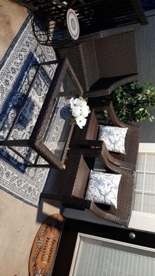 • EASY CARE: For an outdoor rug, remove debris frequently with the use of a broom or blower. To wash, spray the surface with a soap and water mixture, then rinse thoroughly with a garden hose and hang over a railing to dry thoroughly. Rotate for even wear.
