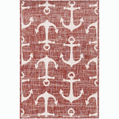 Unique Loom Outdoor Coastal Ahoy Solid Print Woven Area Rug