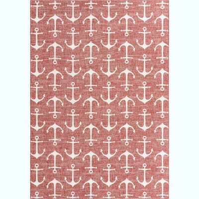 Unique Loom Outdoor Coastal Ahoy Solid Print Woven Area Rug