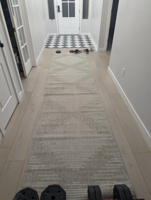 I wanted a subtle patterned rug for my entryway that didn't take away from my fancy tile. I felt like this went well with it and I also wanted something a little more durable for dirty shoes coming from outside. So far I like this a lot! I put weights on the corners and it took about 4 days to lay flat. It looks more beige than gray, which I like. I love the subtle diamond pattern. I'll probably put a rug pad and rug tape underneath it.