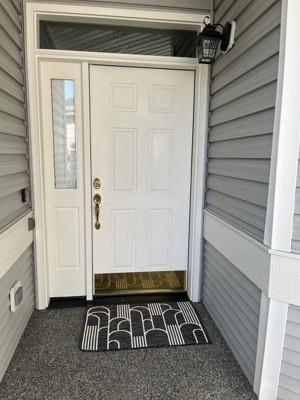 This was a gift for my sister for her new house. I sent her several screenshots from several sources. She is very artistic and she loved the design of this one. A great signal of her style welcoming her guests. The packaging was protective and it unrolled and flattened nicely and with a little reverse rolling. The grip piece to help keep it in place works well. It is a solid, dense, thin rug that will wear well and not be bulky looking. Good choice!