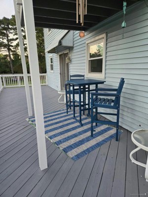 This striped rug makes me happy every time I see it. I was such a surprise when we unrolled it on the deck. It brightens the entire area and is a beautiful, denim blue. We could not love it more.