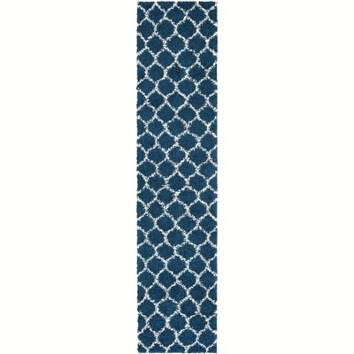 The ever-popular trellis pattern gets a gloriously lush interpretation with the Moroccan Trellis Shag Collection. Super fluffy and luxurious, this shag collection gives an abundantly plush look and feel. The linear designs of the trellis pattern create added visual interest, making each rug uniquely stand out from the rest of the shag options around. Available in many of today's most popular colors such as grass green, light pink, ivory, charcoal and primary blue, each is paired with a complementing pattern hue. Cohesive geometric designs tie each piece together, making multi-room placement effortless. Choose from subtle patterns in pastel colors to bold statements in monochromatic or primary shades. From runners to round rugs, square to oval, there's a shape to suit any room. Made of thick pile polypropylene, each is created with machine woven power loomed construction. While the plush design may look high maintenance, it's kid-friendly and stain resistant.