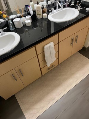 [This review was collected as part of a promotion.] Perfect non slip mat to place in front of our his and hers sink. The texture is great beneath our feet. Love that we don’t need to keep readjusting its positioning.