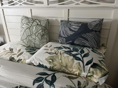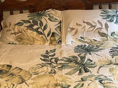 [This review was collected as part of a promotion.] This Lorelai Cotton Printed 6 Piece Comforter Set is great quality. Very soft and comfortable to the touch. It has a tropical green and blue plant pattern with a white background. Comes with two shams, a blue bed skirt and two decorative pillows in green and blue to match the colors of the ensemble. Matches my decor perfectly. I would definitely recommend this comforter set.