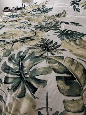 [This review was collected as part of a promotion.] The Lorelai comforter set has a beautiful design with oversized tropical plants in hues of blue and green. It fits perfectly on my Queen mattress and is very comfortable to lounge on. The bedskirt, shams, pillows, and comforter seem very durable and should last many years. The pillows are compressed for shipping and need to be fluffed up. Since this is a 6-piece set, it’s a great value for the price paid. I’ve already received many compliments on the finished ensemble.