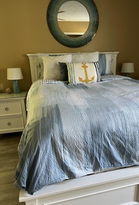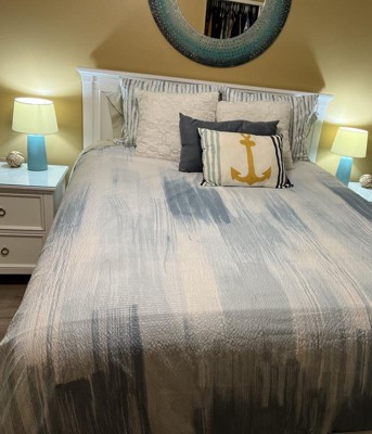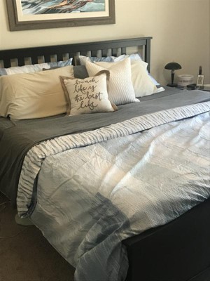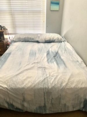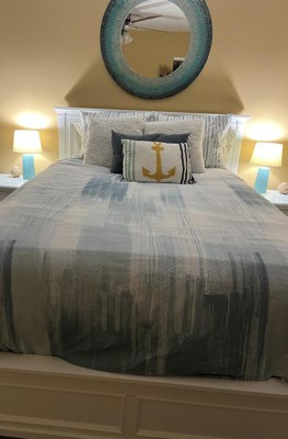 [This review was collected as part of a promotion.] This duvet cover is nice. I’ve been looking for a coastal feel comforter for a while and came across this duvet cover. I put my queen comforter inside of it rather than a duvet. It tends to slide a bit but that might be because it’s not a duvet. I put safety pins in the comforter and tied the inside of this duvet cover to that. It also does wrinkle even though it claims it does not. I love this pattern- I wish it came in a comforter as I’m not super great at duvet covers. I restyled it a few times. I think it ties the room nicely together.