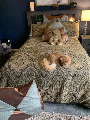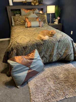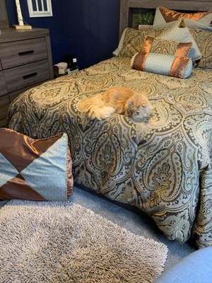 [This review was collected as part of a promotion.] I love this new Hampton Hill Canovia Springs Jacquard Comforter Set. It super durable and made with heavy duty quality materials. It is so beautiful when it is all put together. The premium quality makes it a little heavy but it is stunning. It’s made with durable stitching and should last for many, many years to come. I love the pillows and design and the underside is silky smooth and an eye- popping copper color. Very soft to the touch and very sturdy to the topside. The pillows are a beautiful accent to the set. I highly recommend this set if you are looking to add a premium look to any bedroom. Even my 23 year old cat feels like royalty.