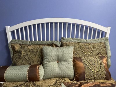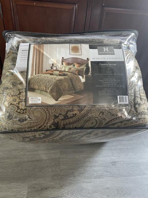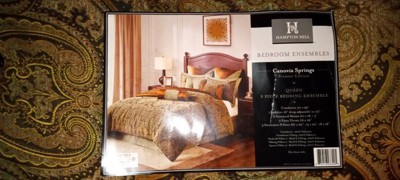 [This review was collected as part of a promotion.] I recently got this Hampton Hill Bedroom Ensembles Canovia Springs Premier Edition Queen 9 Piece Bedding Ensemble, and I am highly disappointed in it. The three main things that stood out to me about this Bedding Ensemble aren't positive things. The first thing that stood out to me was while I was unboxing this Bedding Ensemble and while it was still in its original plastic storage bag, I picked it up by the strap and it fell apart immediately. It ripped the same way thin paper does. The second thing that stood out to me was that the neck roll pillow had a hole in it and loose threads before I ever even got to use it. Finally, the third and last main thing that stood out to me is that it’s extremely heavy and more of a winter type bedding ensemble. While a queen is the perfect size for my bed, I'm not really fond of the colors texture or design. All in all, I honestly would not recommend this betting ensemble as it seems to be of a lower quality than it leads you to believe.