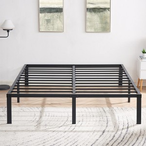 Product Name: VECELO King Bed Frame, Heavy Duty Metal Platform with Steel Slat, Black, Size 2