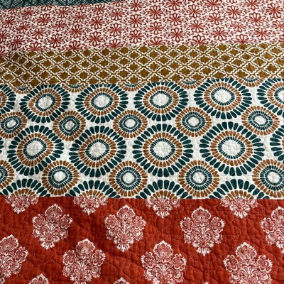 3pc Full/Queen Bohemian Striped Reversible Oversized Quilt Bedding Set Blue/Green - Lush Décor