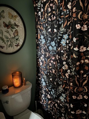 Boho Floral Wildflower Black and Orange Create an easy bathroom makeover with this Sweet Jojo Designs shower curtain. Add a touch of style and a splash of color to your bathroom to complete the look of your dream decorative theme. Sweet Jojo Designs creates various coordinating room accessories and decor for all of their children's bedding and nursery bedding set collections (These items not included). Made with 12 reinforced button holes to prevent tearing. Design: Bohemian Black and Orange wildflower garden floral pattern creates a farmhouse and vintage look. This cottage core design will compliment any bathroom in your home.