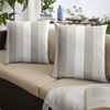 Add a touch of luxury to your outdoor furniture with this stylish set of two square pillows and take your outdoor comfort to the next level! These pillows showcase a perfect, stripe fabric in a shade of natural that will immediately elevate your space and help you embrace the outdoors. They are carefully crafted out of a performance material that is weather and fade-resistant, making them perfect for the patio, deck or pool area! These pillows are also made in North America to ensure durability that you can depend on year after year! Sunbrella is founded on the belief that fabrics should be both beautiful and functional. We began in the 1960s with the challenge of creating an awning canvas with a substantially longer lifespan than cotton. Sunbrella has become widely adopted for shade structures, marine canvas and upholstery fabric for both outdoor and indoor applications.Our textiles are made with close attention to design detail, and engineered with robust performance characteristics that provide resistance to fading and degradation from sunlight and chemical exposure. The fabric is tactile yet durable, has industry-leading environmental characteristics, is easy to care for and offers long life – wherever it’s used.No Sunbrella manufacturing facility in the world sends waste to landfills. A result of our focus on efficiency, this monumental achievement allows Sunbrella to lead by example, putting sustainability into practice every day across the globe. Our unique coloring process not only makes Sunbrella fabrics fade-resistant, it also conserves more water than conventional dyeing processes. At Sunbrella we believe it’s important to preserve the environment around our facilities. We work to conserve the plant and animal life that is native to the area and encourage our employees to plant gardens designed to provide fresh food and nourish local wildlife.We stand behind our fabrics with a guarantee that’s the best in the industry: a 5-year limited warranty for upholstery. This warranty protects the original purchaser of Sunbrella fabric. This warranty protects against Sunbrella fabric becoming unserviceable due to color or strength loss from normal usage and exposure conditions, including sunlight, mildew and atmospheric chemicals.