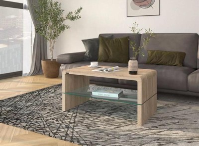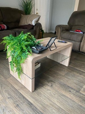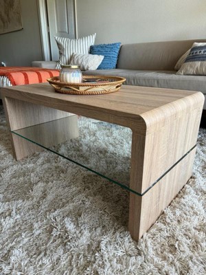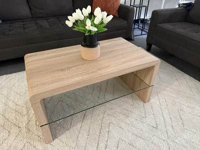Ren Home Maja Rounded Coffee Table with Glass Shelf, Oak
