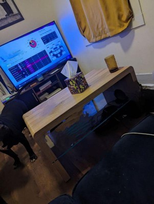 [This review was collected as part of a promotion.] I'm super impressed with this table. I was worried the glass would be thin and feel cheaply made but was completely blown away. It's nicely made tempered glass. My biggest concern is the "wood" finish. It looks like paper glued on. It was only noticable during assembly and not on any of the visible parts so I'm hopeful for it's longevity . As of right now it looks and feels very sturdy. I'll update as needed about the quality as needed.