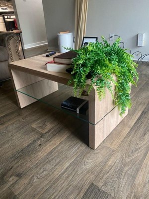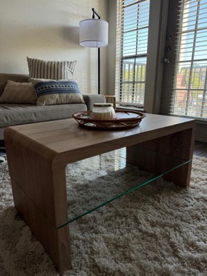 [This review was collected as part of a promotion.] We are really pleased with our coffee table! It was pretty easy to put together and didn't take long at all. It's very modern looking and I think it would fit in a variety of spaces! It's a heavy peice, which I think speaks to the quality and I think it will be durable and last us a while. I really love the shelf underneath, it's great for keeping the top of the table clear and hiding things away that I'd normally keep sitting on the top of the table, it helps it look more organized.