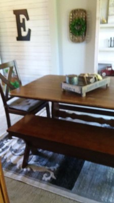 [This review was collected as part of a promotion.] This rug is the perfect size for use under our dining room table. It is just right not too big or too small. The two chairs and two benches fit perfectly too. It is a very neutral pure gray and is not pulling any other colors with it like sometimes grays will do. It looks great with our gray carpet and our dark brown furniture. It did have to be out of the packing for a few days before it laid flat. And since it has been laying flat I don't see any curling on the edges. I love it with our farmhouse decor and I can see it work with many other decors.