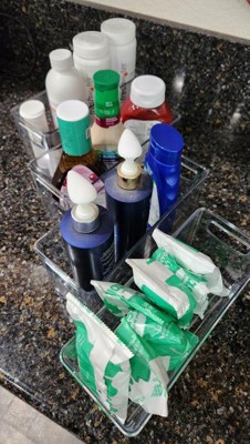 I really like these bins! First of all, I like that they are clear, so you can see their contents. They are stackable if you want to stack them. They fit well in cabinets! I used them in my medicine cabinet and also in my pantry. Their uses are endless!