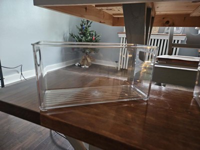 I got these bins to use in the upper shelf of my spice cabinet. They fit very nicely in there, they aren’t too big or too long, they are the perfect size!! It saves me a lot when I need to find something. I can easily just grab and pull the entire bin down instead of having to go get the step stool and dig. The bin seems to be well made, it’s a nice thick sturdy plastic. Overall I’m very happy with these bins and would definitely recommend them!!