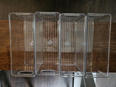 iDESIGN 4pc 10"x4"x5" Small Recycled Plastic Stackable Kitchen Organizer Bins: Clear Fridge & Freezer Storage