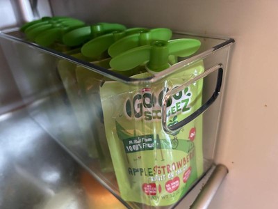 I received these products for free from the Hey, Bullseye™ sampling program in exchange for my honest review.” I like the design because it has handles on both ends for a easy grip in case it get messed up with kids, easy organization, they are stackable, works in freezer but decided to use on a shelf i cant reach, like it hold water bottles, easy wash. I changed one to hold apples and doesnt take up much room in refrigerator. It does hold snacks for the kids. I really have no dislikes about the product. Its easy, simple and fits just about everywhere I tried.