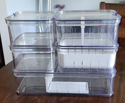 These bins are great quality and are perfect for organizing my refrigerator and pantry. They come with lids which is perfect to store fruit in or you can use them without the lids and store larger items. They also come with dividers in a couple of the bins and a drainer in another. The bins def help make my fridge and pantry look much nicer.