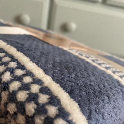 The color shown (medium/light blues) is not what I received. The blanket I received was navy/white. I returned since it did not match my decor.