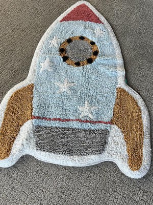 Adorable, small, rocket ship accent rug.