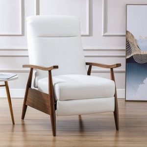 A clean classic recliner is what you get with the Solaris wood arm push back chair. Featuring chestnut brown wood arms with tapered legs this comfortable recliner adds a modern look to any room. The innovative leather gel upholstery provides the soft touch of a top grain leather at a great value.