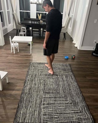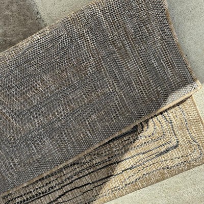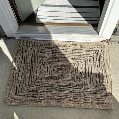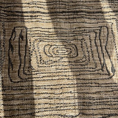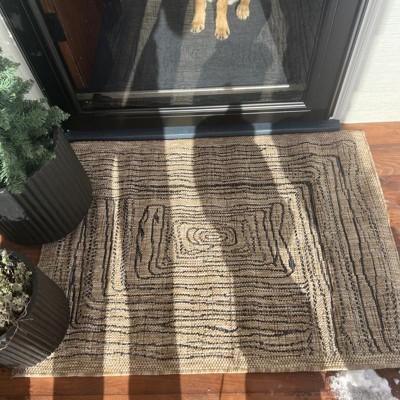 This is a 2’6x3’5 woven machine washable rectangle rug. It’s a light brown with black accents in it. I love that it is stain, water, uv and water resistance, which makes it perfect for my front door! I also love that I can put it in my washer if it needed to be washed. I am very impressed with the quality, and the design makes it interesting, but has neutral colors to go with anything. When I took it out of the box it just needsto be flattened from being rolled up. Overall, I think this is a great purchase that I made, and it is good quality for the price! I received an incentive to write this review.