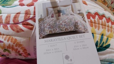 - THE SET: A sophisticated bright floral quilt and two standard shams, this quilt set is part of the Levtex Home Maravilla collection. Used by itself, as a layering piece or as a bedspread, this quilt is extremely versatile.