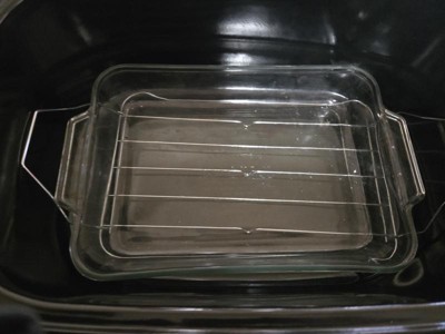 [This review was collected as part of a promotion.] Multiple uses I can use it for a chicken , ham , or even a roast . It makes dinner party’s easier . I can serve more family members and not have to worry if we will have enough food . It heats up quickly . Uniform cooking temperature throughout the food . I really enjoyed having this pan to cook with .