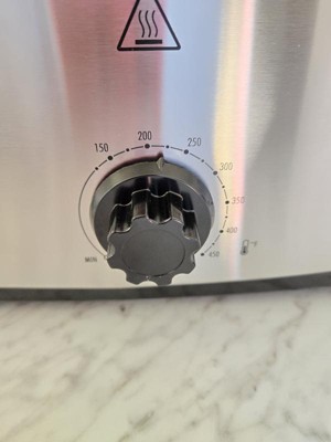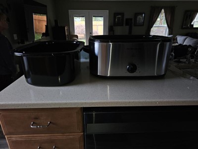 [This review was collected as part of a promotion.] I've been looking for a big roaster oven for a while and I love this one! We do a lot of big meals for our family and our small businesses and this is perfect! I love that I can fit one whole dish in this instead of using a bunch of smaller cookers. The stainless steel and black look matches my kitchen. It is easy to use and has the temperature knob on the front which is much better than just low/high. I definitely recommend!