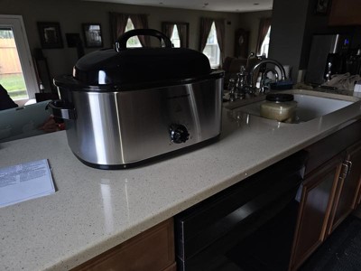 [This review was collected as part of a promotion.] I was so excited to get the opportunity to review this electric roaster and it has not dissapointed! It is very large and can hold large amounts of food. I have used it to make hams, whole chickens, and a casserole. Everything turns out just perfect. This roaster is very large and does take up much counter space but it's worth it. It is like having an extra oven. I like the silver color of it as it matches my other appliances. I'm looking forward to using this often.