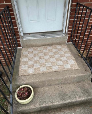 This rug is great! I love that it can be used indoors or outdoors. The fact that it can be used outdoors means it will be very durable if it gets spilled on or anything. I love the colors of it, just as described. It actually makes a nice welcome mat too. A few bumps in it when I unrolled it but those flattened out on their own quickly. Love this rug and believe it will last a while! I received an incentive to write this review.