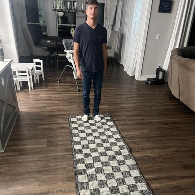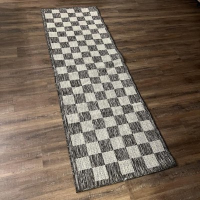 Playa Rug 2'6''x8' Machine Washable Daisy Rectangle Woven Indoor Outdoor Runner Jute and Black