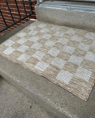 This rug is adorable! I love the size of it and it fits perfect on my porch in front of my rocking chairs or in my kitchen as well! I love that the rug can be used inside and outside. The material is a rougher bamboo type of material but it is still comfortable to stand and walk on. The rug folds up nicely and unrolls without creasing. This rug measures two feet and six inches by eight feet. I received an incentive to write this review.